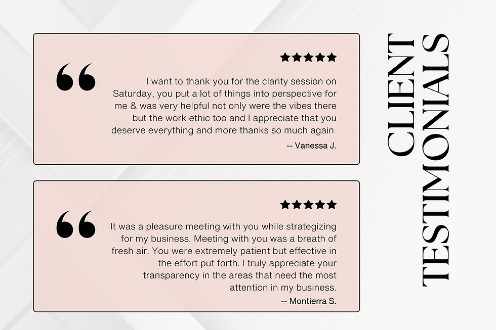 Designed for founders seeking sharper direction, our Clarity Sessions deliver focused analysis, refined positioning, and clear next steps—so you can move forward with intention. We identify what’s aligned, what’s drifting, and what needs restructuring to support your next level with discipline and confidence.